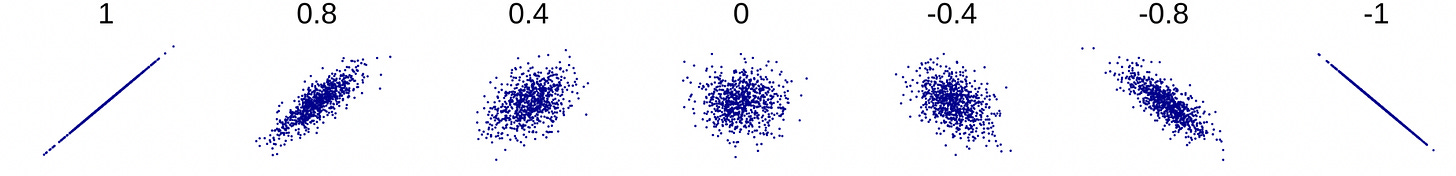 Of course, associations can be non-linear as well. That same image from Wikipedia includes visual examples of relationships that seem clearly structured but correspond to a correlation of 0: a good example (along with Anscombe’s Quartet) of the perils of relying on statistics without plotting your data.